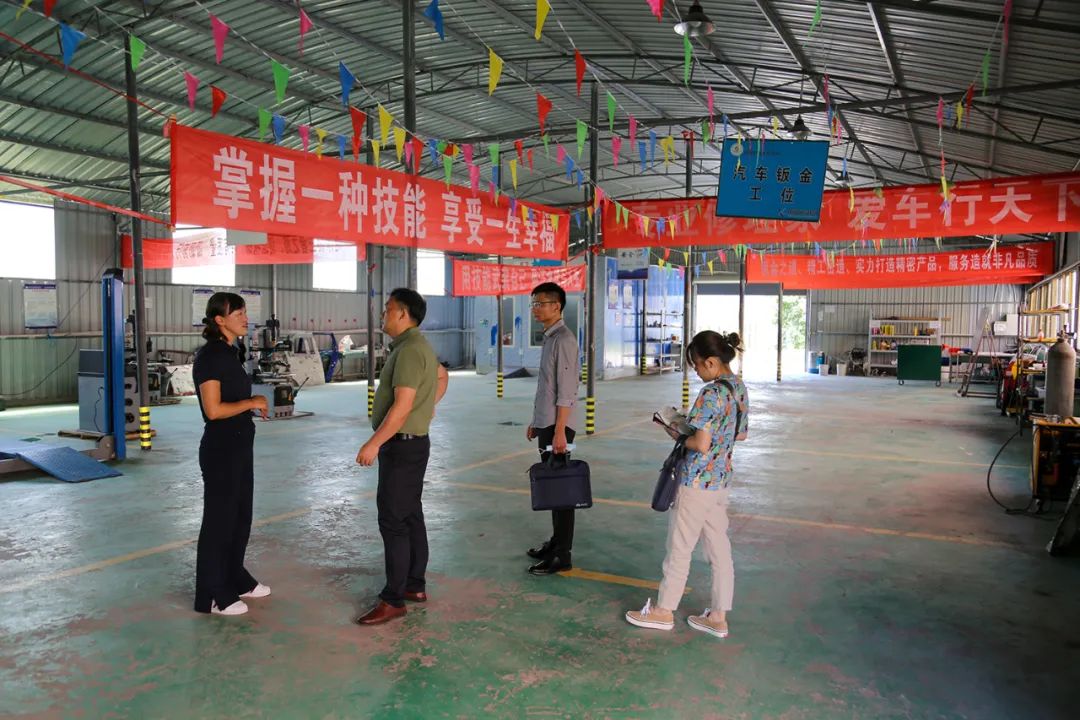 圖為調(diào)研組一行在汽修專業(yè)實訓(xùn)室調(diào)研